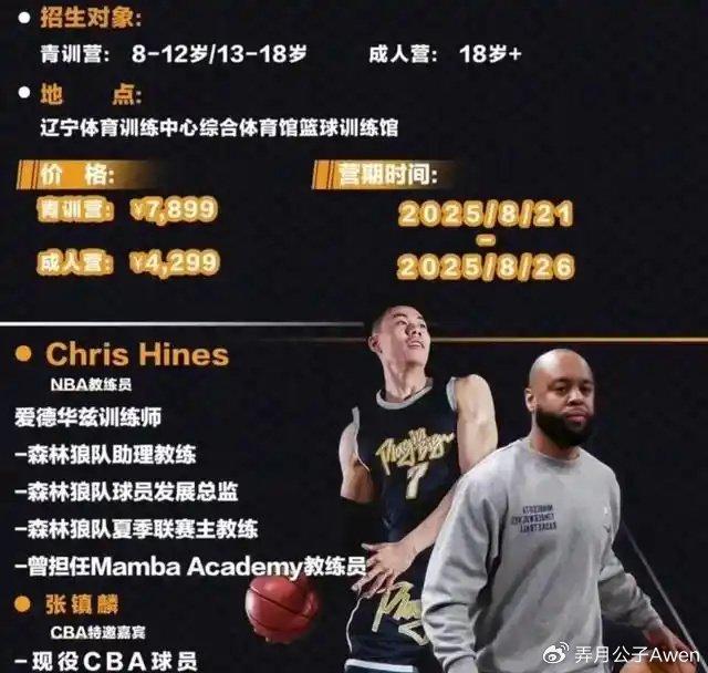 日前,张镇麟个人首次训练营开营,地点设在辽宁体育馆训练馆。而关于此次训练营的收费标准也被曝光,据透露青训学员收费标准为6天7899元,成人学员收费标准为6天4299元,本次训练营教练队伍实力雄厚,两位有NBA和CBA职业背景的训练师加入,另外还有梅奥和郭凯伦这两位特约教练。