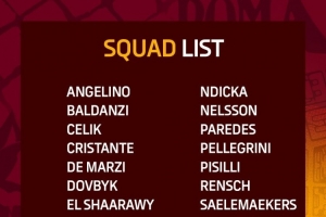 体育资讯4月12日讯 北京时间4月14日凌晨,罗马将在意甲第32轮比赛中对阵拉齐奥,罗马公布了德比战的大名单,胡梅尔斯、多夫比克、沙拉维在列,迪巴拉因伤缺席。