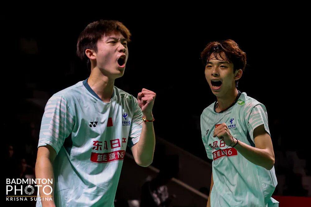 男双胡珂源/林祥毅再遇青年赛时的老对手、马来西亚的江凯兴/戴伟钦,双方上一次交手是在2024年南昌世青赛男双决赛上,当时胡珂源/林祥毅以0比2不敌对手摘银。成年赛中再相遇,“胡林”组合以23比21、21比18战胜这对男双六号种子,成功复仇。